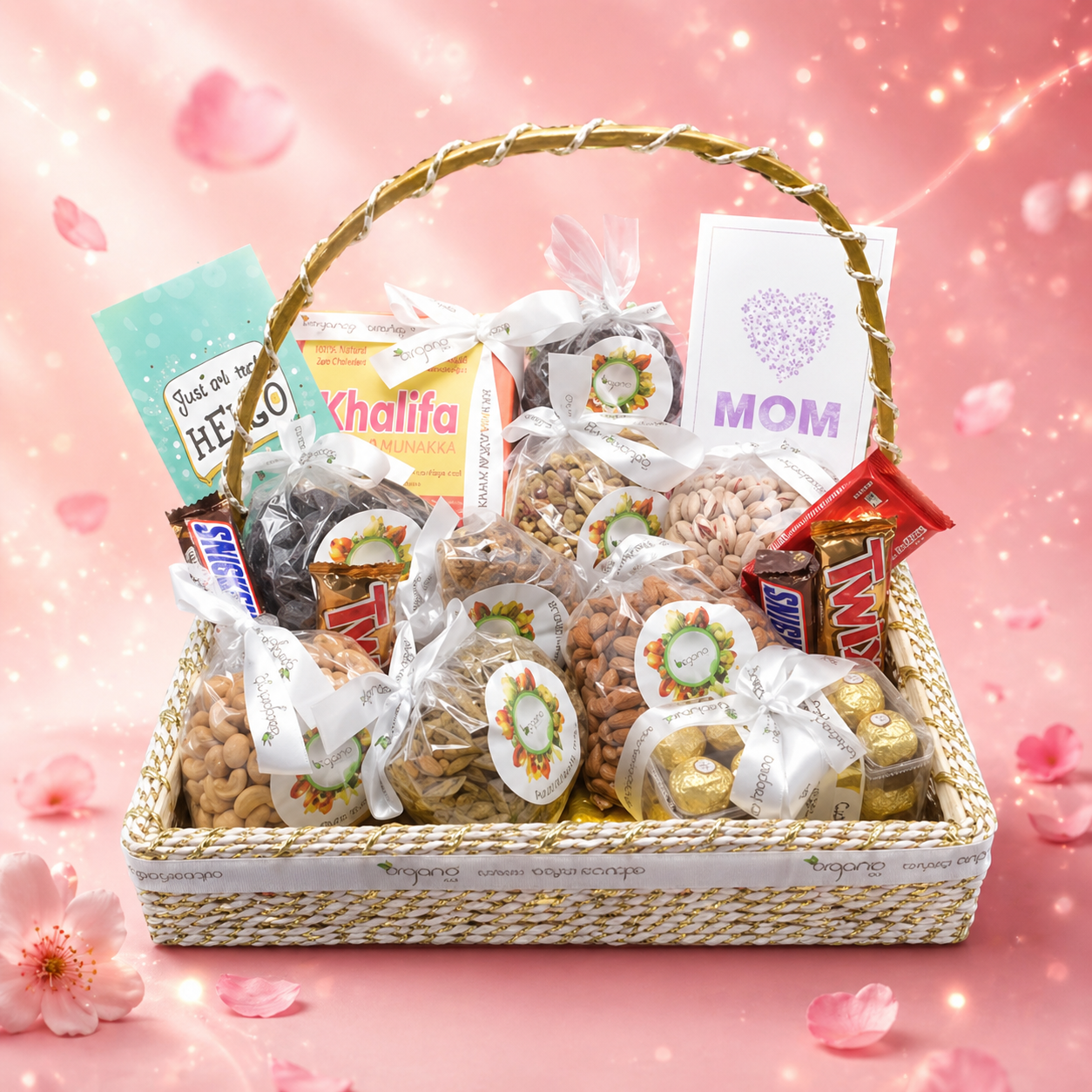 Send Healthy Delight basket on mother’s day and Make your loved ones feel special and cared for with this heartwarming Mother’s DAY gift set .